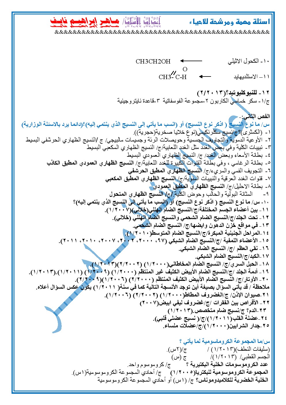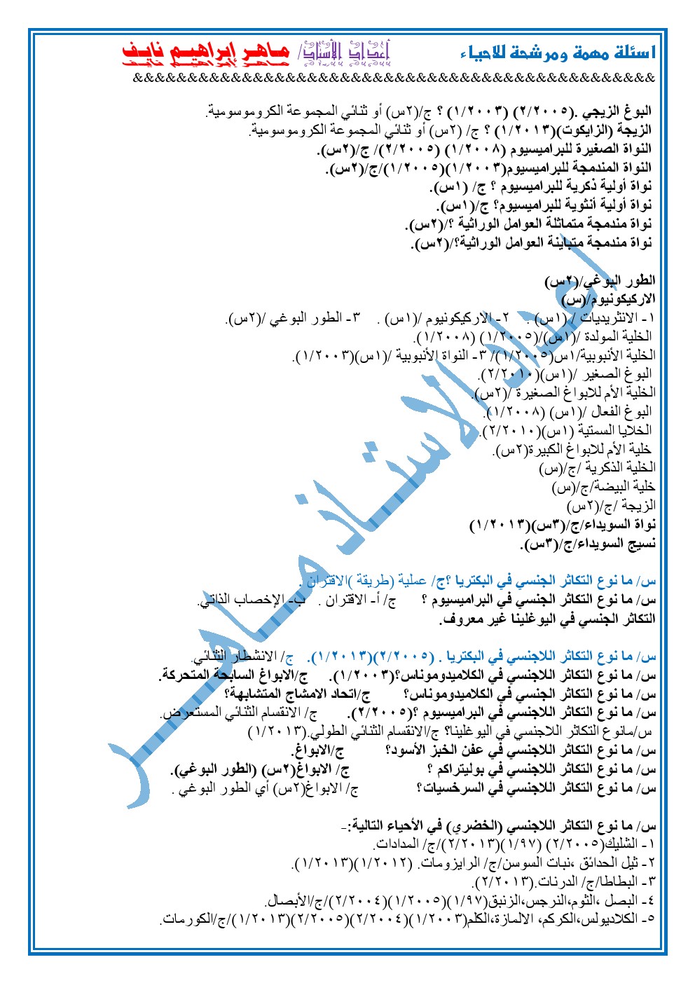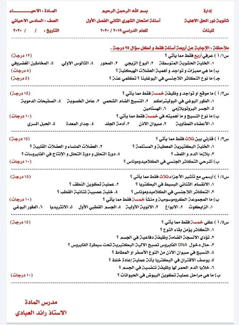 اسئلة الاحياء من 2013 الى 2019 للسادس الاحيائي الكاملة في الاحياء 2020 السادس الاحيائي تشمل.