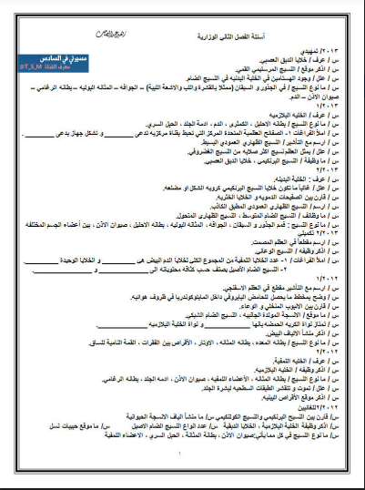 اسئلة الفصل الثاني احياء السادس العلمي