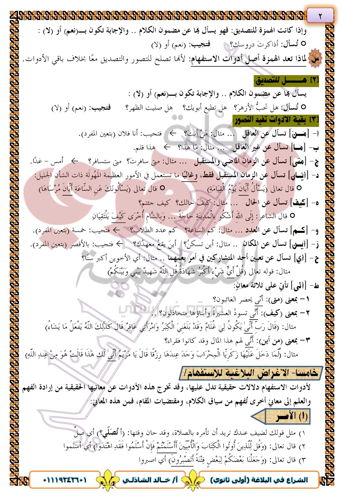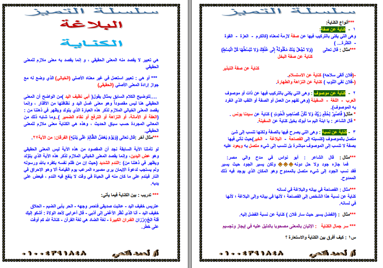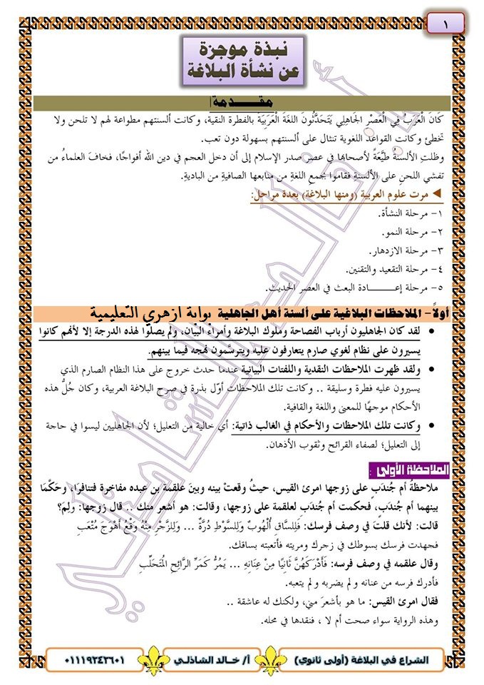 نقدم لكم طلبة وطالبات الصف الأول الثانوي ملخص هام جدا في البلاغة للترم الاول إعداد أستاذ احمد فتحي.