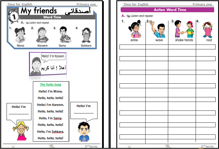 الصف الاول الابتدائي انجليزي. نقدم لكم منهج اللغة الانجليزية للصف الاول الابتدائي 2019 مصور من كتاب الوزارة يمكنكم تحميله من خلال موقع نتعلم صح مجانا سوف يحصل التلميذ علي اسطوانه خاصه بالكتاب الدراسي للصف الاول الابتدائي 2019. مذكرة انجليزي أولى إبتدائي الفصل الدراسي الأول. موقع ملزمتي يقدم لكم مذكرات تعليمية للصف الاول الابتدائي كل ما يخص الصف الاول الابتدائي من ملازم وملخصات ومراجعات نهائية. نقدم لكم كتاب وزارة التربية والتعليم في جميع مواد أولي ابتدائي الفصل الدراسي الأول 2020 2021 لجميع المواد حيث يمكنك تحميل كتب الوزارة على الهاتف المحمول أو على الكمبيوتر أو اللابتوب لجميع طلاب الصف الأول الابتدائى.