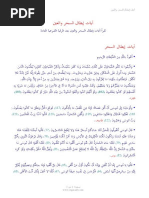 اقوى ايات ابطال السحر الاربعة مكتوبة والعين والحسد والمس Pdf لفك المسحور