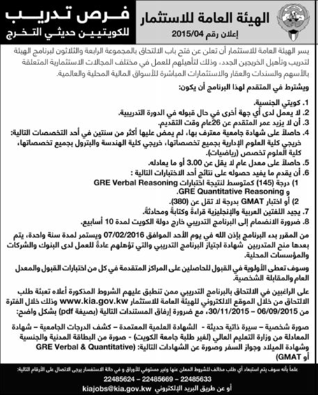 الهيئة العامة للاستثمار الكويت. استقبل العضو المنتدب في الهيئة العامة للاستثمار السيد فاروق بستكي الدفعة الثانية والأربعون من الخريجين الكويتيين الجدد وذلك يوم الخميس الموافق 2020 01 30 وبحضور المدراء التنفيذيين ومدراء الإدارات وكبار المسؤولين في الهيئة. ستجدون هنا الأسئلة الأكثر شيوع ا والتي تعتبر دليل استمرارية أعمالكم في ظل الظروف الحالية الناتجة عن جائحة فيروس كورونا المستجد covid 19. الهيئة العامة للتعليم التطبيقي والتدريب. النيابة العامة في دولة الكويت.