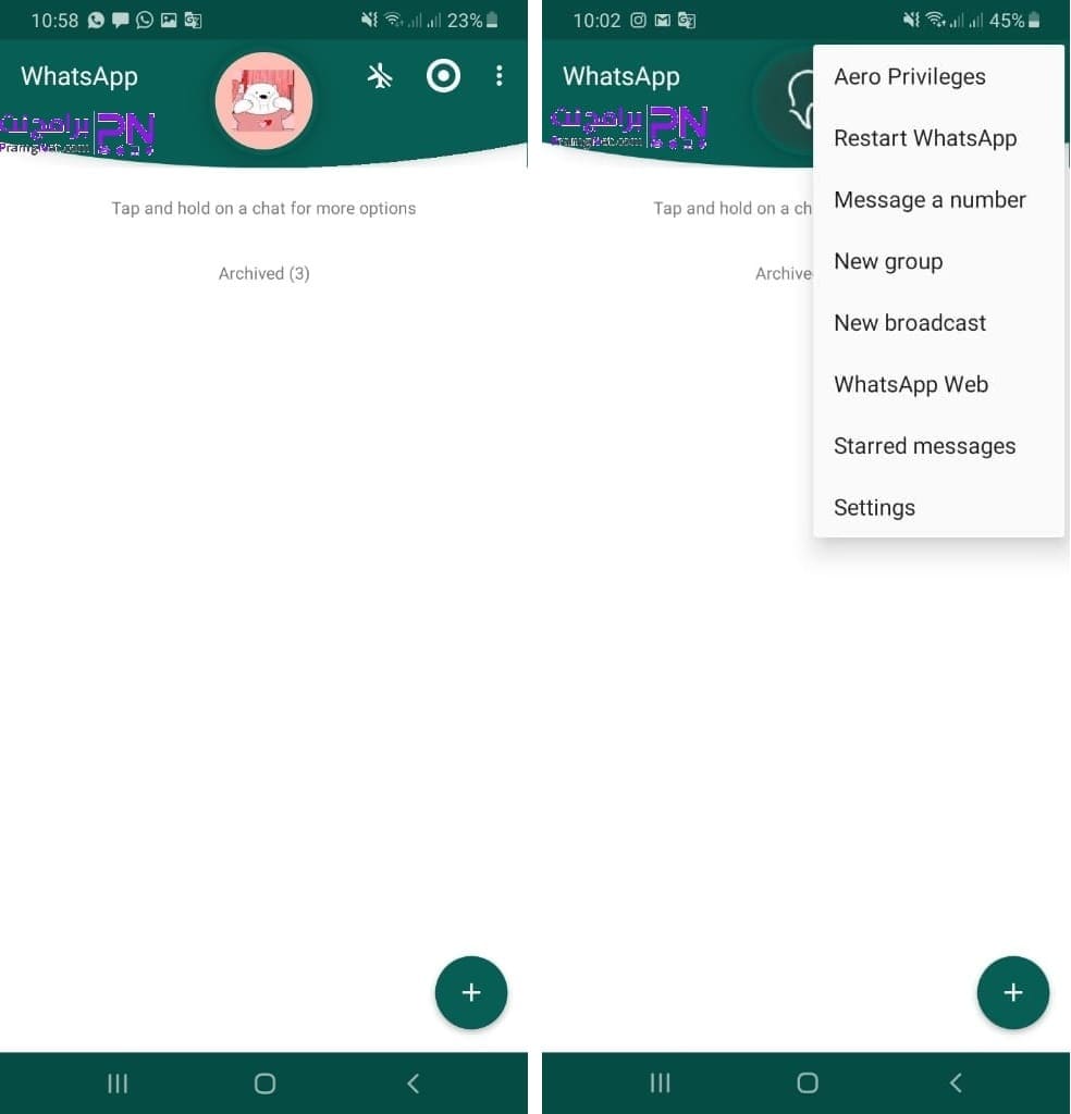 تنزيل الواتس ايرو آخر إصدار wa aero v8 36 التخصيص. تأتي هذه النسخة من برنامج واتس اب ايرو whatsapp aero مع حزمة أيقونات عصرية بألوان جديدة وجذابة تختلف كليا عن تلك الموجودة في واتس. واتس اب ايرو مودرن. ايرو واتساب هو تطبيق مطور لتطبيق واتس اب للتواصل الاجتماعي بحرية أكبر يمتلك العديد من المميزات المستخدمة للتواصل عن طريق الرسائل النصية و الرسائل الصوتية و كذلك مكالمات هاتفية كما ان نسخه واتس الايرو whatsapp aero apk نسخة.