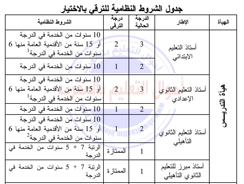 تحميل جدول الترقي في الدرجات الرتب الأرقام الاستدلالية