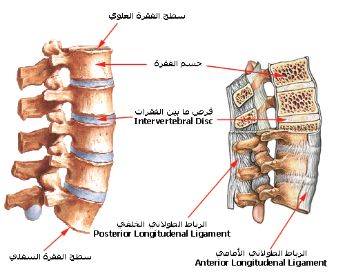 يتصل العمود الفقري في الأعلى مع الجمجمة وفي الأسفل مع الحوض وهو يتكون من 24 فقرة متحركة إضافة إلى 7 فقرات أخرى ملتحمة تشكل القسم السفلي من العمود الفقري العجز والعصعص. العمود الف ق ر ي أو العمود الف ق ر ي أو الف ق ار للكائنات الحية الفقارية مكون من سلسلة ف ق ر ات مفرغة لحفظ النخاع الشوكي الذي يمتد فيها ويبلغ عدد الف ق ر ات عند الإنسان 33 فقرة. ويمكن تقسيم الكائنات حسب احتوائها على العمود الفقري من عدمه فالكائنات الفقارية هي التي تمتلك عمود فقري بينما الكائنات اللافقارية لا تمتلك عمود فقري. Vertebra تتشابه كلها من حيث التركيب الأساسي حيث تتكون من جسم أمامي وقوس خلفي.