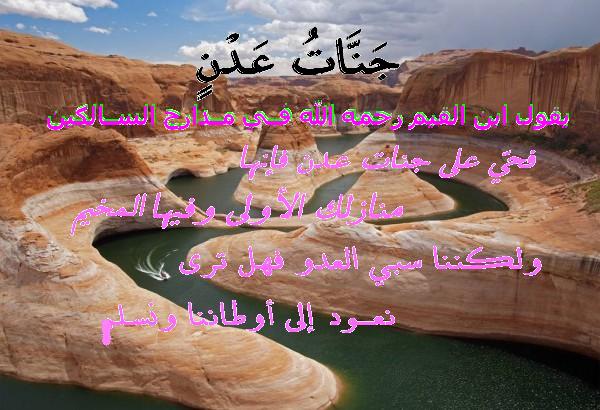 جنات عدن جنة تعني حديقة غناء ومنها جنينة حيث أشجار الفاكهة والخضرة والماء العذب و عدن بمعنى الخلو فجنات عدن تعني جنات الخلود أو جنات الخـ ـلـد. بين أشجارها وقصورها لهم فيها ما يشاءون كما قال تعالى. وفيها ما تشتهيه الأنفس وتلذ. إقامة يدخلونها تجري من تحتها الأنهار أي.