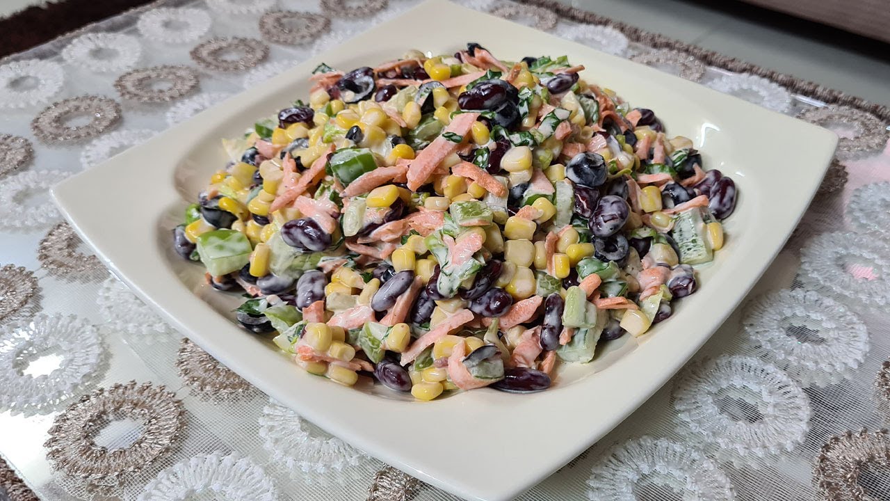 سلطة المكرونة بالذرة والفاصوليا الحمراء