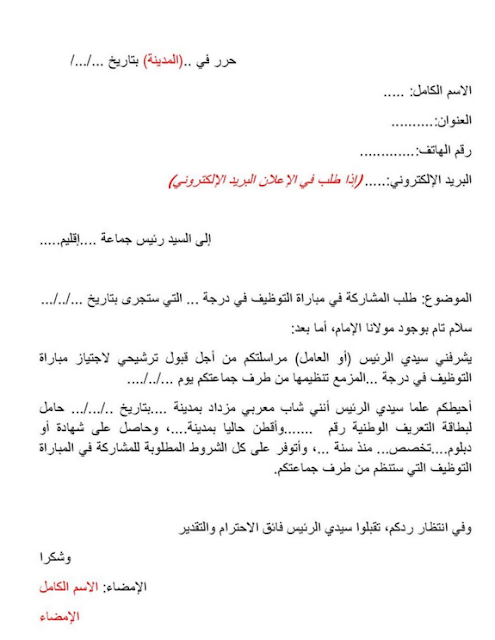 نموذج كتابة طلب خطي كتابي كامل جاهز باللغة العربية لمسابقات العمل والتوظيف.