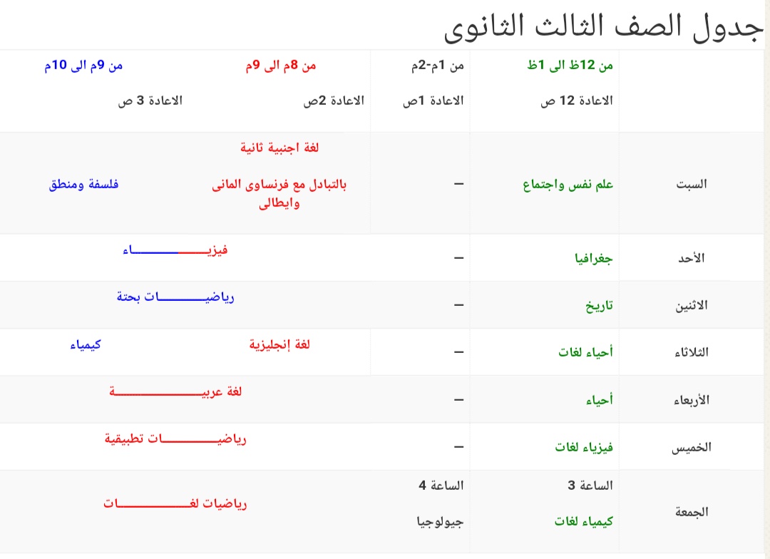جدول دروس الصف الثالث الثانوي على قناة مصر التعليمية 2021.