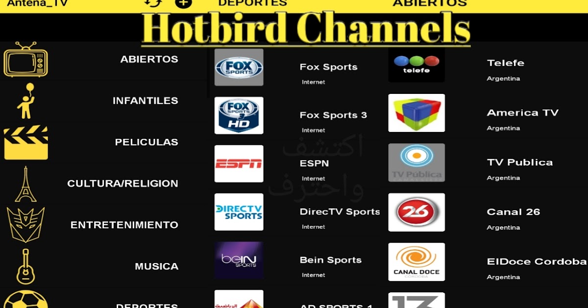 The3creator 21 سبتمبر 2018 3 44 م. Viaccess 5 0 viaccess 6 0. يجمع القمر هوت بيرد العديد من القنوات الرياضية والترفيهية من خلال ترددات هوت بيرد والتي تبث عبر نطاق تغطية القمر ولها حقوق معظم الدوريات العالمية والتى من خلالها لن تحتاج الى تركيب قمر اخر. Rsi la 1 hd.
