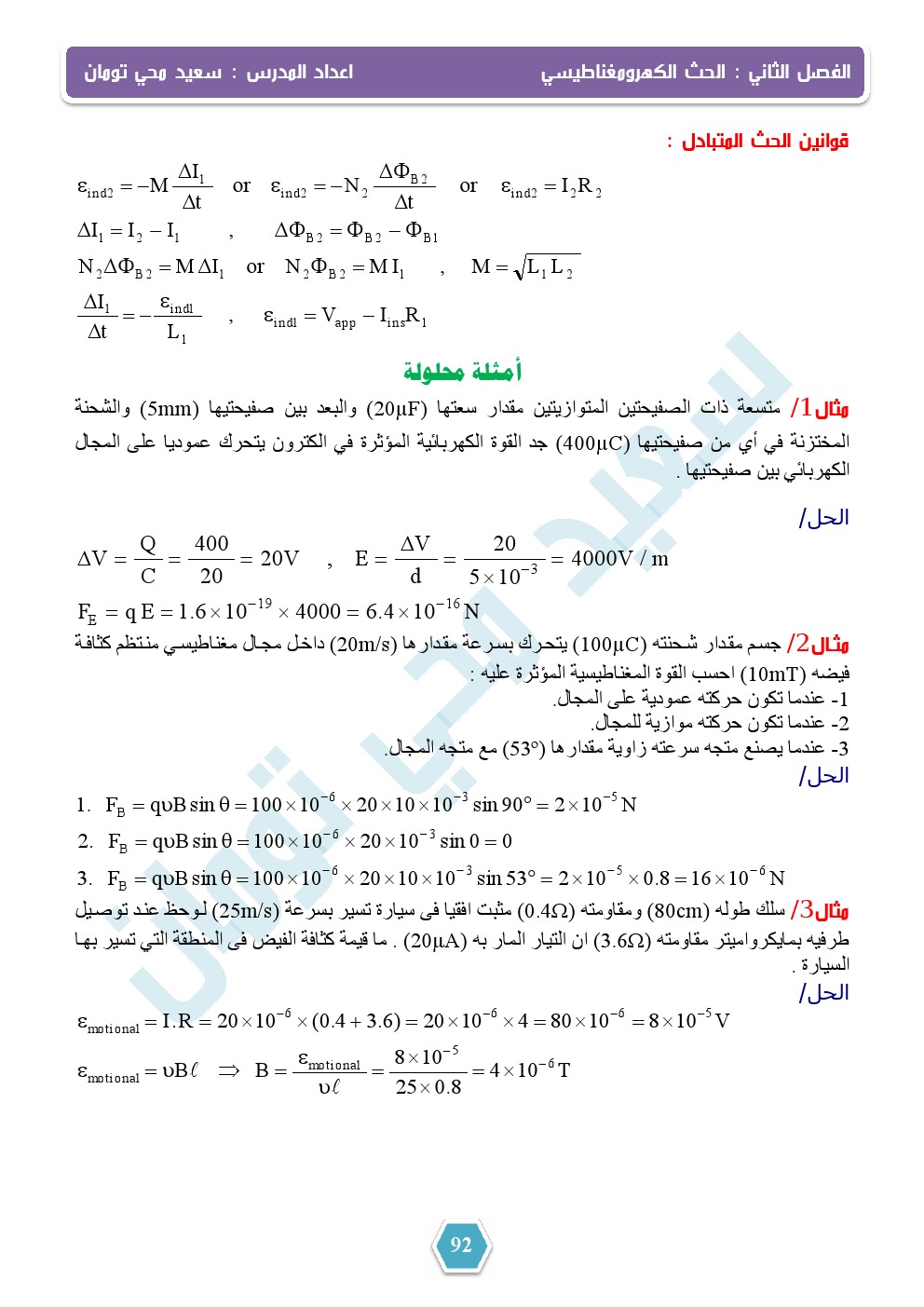 عصام محمد الشمري ملزمة فيزياء السادس العلمي الجزء الأول ج1 والجزء الثاني ج2 الفصل الأول والثاني والثالث الرابع الخامس السادس السابع.