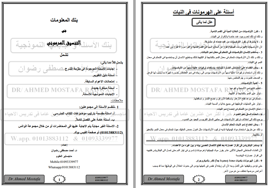 بنك أسئلة الهرمونات بالإجابات في الأحياء للصف الثالث الثانوي 2018 د أحمد مصطفى