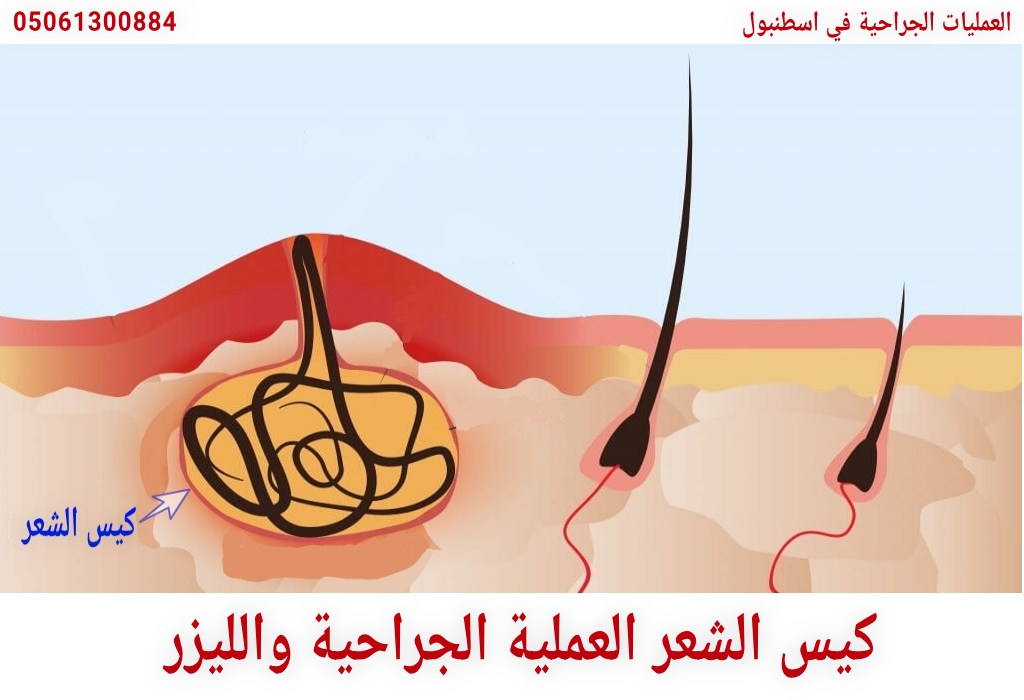 كيس الشعر الناسور العصعصي. يكون كيس الشعر في بدايته عبارة عن ثقب في أسفل الظهر وأعلى الأرداف تتجمع فيها السوائل والأوساخ وتتحول إلى خراج فيما بعد. الناسور العصعصي هو عبارة عن كيس يحتوي على شعر متساقط يظهر في أسفل الظهر وتحديدا عند منطقة العصعص. تقع الكيسة الشعرية دائم ا بالقرب من عظم الذنب في أعلى شق الأرداف. الكيسة الشعرية هي كيس غير طبيعي في الجلد والذي عادة ما يحتوي على مخلفات الجلد والشعر.