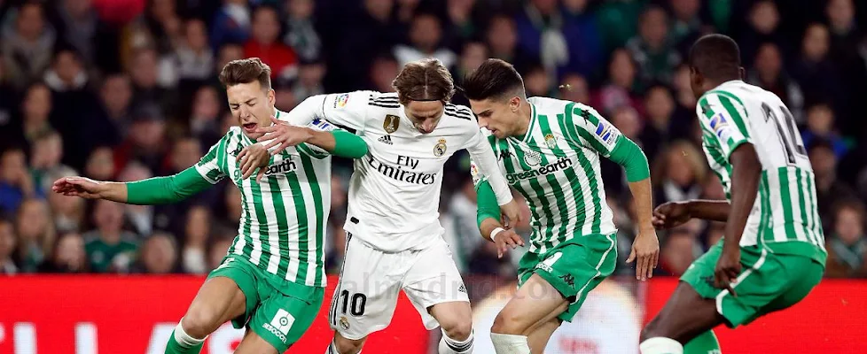 مباراة ريال مدريد وريال بيتيس بث مباشر. سيكون ملعب ريال بيتيس شاهدا على قمة كروية دسمة للملكي مشاهدة مباراة ريال مدريد وريال بيتيس بث مباشر اليوم السبت في الجولة الثالثة من دوري الدرجة الأولى الإسباني والتي تنطلق مع حلول الساعة العاشرة مساء بتوقيت مكة المكرمة. مشاهدة مباراة ريال مدريد وبيتيس بث مباشر الدوري الاسباني 26 09 2020. بث مباشر مباريات اليوم والغد علي موقع اس جول لايف عبر خدمة توفير روابط مشاهدة أهم المباريات للحاسب والجوال وبجودات مختلفة تناسب جميع سرعات الانترنت. ريال مدريد إسبانيا.