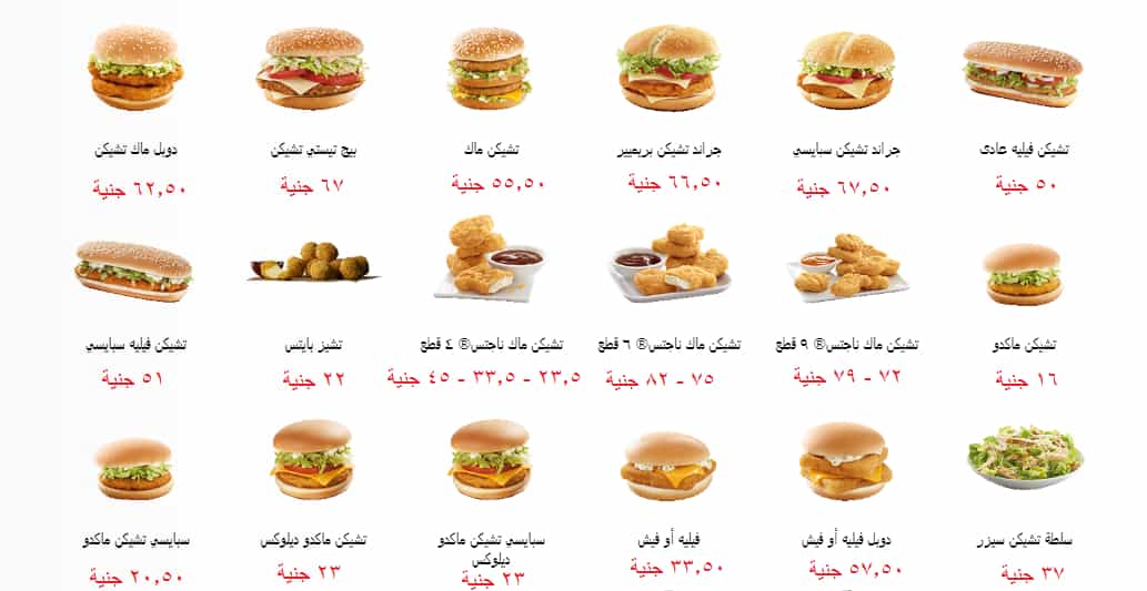 مثل كنتاكي مصر نقدم لكم اﻵن منيو ماكدونالدز الكامل جميع الوجبات اللحوم والدجاج والهابي ميل وباقي الوجبات التي يقدمها المطعم في جميع فروع مصر. وجبات الهابل ميل ماك مصر. ونقدم اليكم الان جميع اسعار وجبات مطاعم ماكدونالدز في الدول العربية مصر والسعودية والامارات المتحدث وهي الاسعار الاخيرة كليا وارقام الهواتف. قائمة طعام مطعم ماكدونالدز م صر متوفرة اون لاين على طلبات.