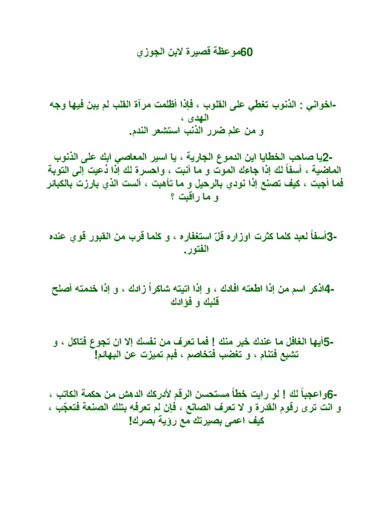 60 موعظة قصيرة لابن الجوزي الموسوعة الاسلامية