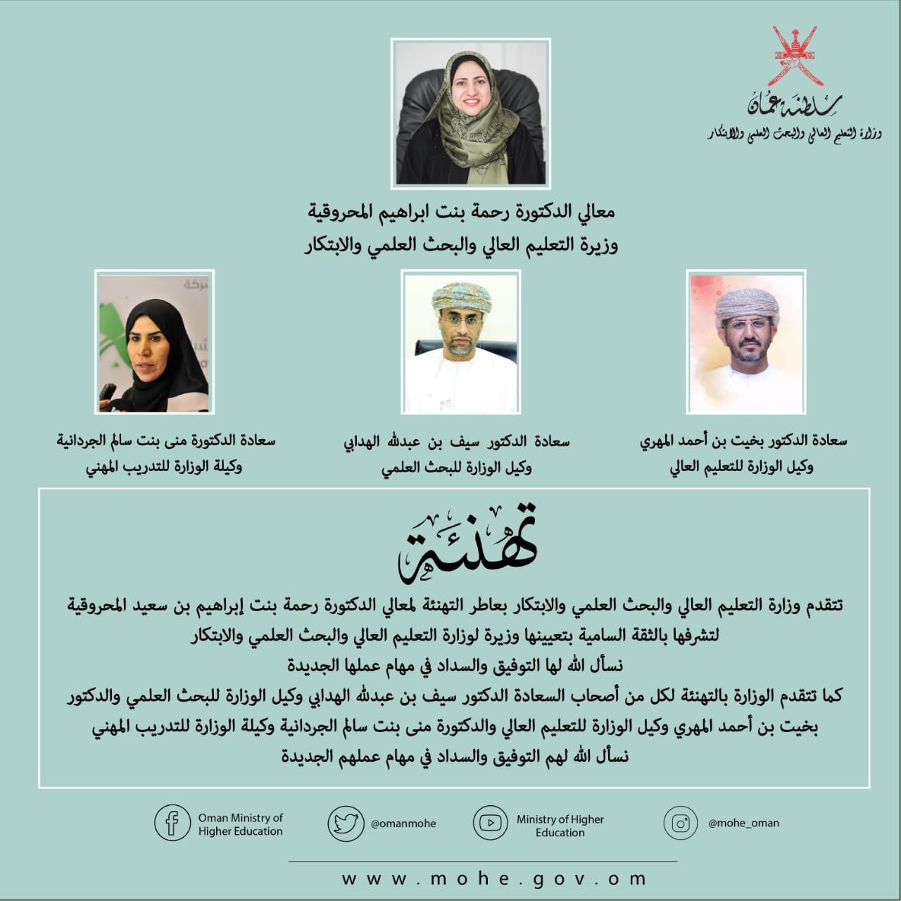 وزارة التعليم العالي والبحث العلمي والابتكار. تقع مؤسسة جامعات المعرفة الدولية على مساحة 50 فدان ا في العاصمة الإدارية الجديدة بقدرة استيعابية 15 ألف طالب وتبلغ التكلفة الاستثمارية للمشروع حوالي 7 مليارات جنيه. مرسوم سلطاني رقم ۹۸ ۲۰۲۰ بتعديل مسمی وزارة التعليم العالي إلى وزارة التعليم العالي والبحث العلمي والابتكار وتحديد اختصاصاتها واعتماد هيكلها التنظيمي نحن هيثم بن طارق سلطان عمان بعد الاطلاع على النظام الأساسي. هيئة البحث العلمي والابتكار من الهيئات التي تم تأسيسها في وزارة التعليم العالي والبحث العلمي بغرض دعم ورعاية البحث العلمي في الجامعات والمعاهد والمراكز البحثية التابعة للوزارة. على أبنائنا الطلبة الالتزام بالتعليمات التي تصدرها وزارة الصحة في الحجر الصحي سواء المنزلي.