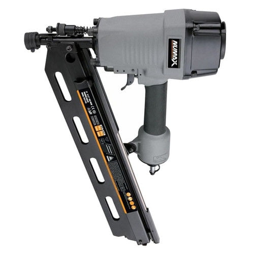Pnuematic nailer. Metabo hpt palm nailer pneumatic accepts nails from 2 1 2 to 3 1 2 360 swivel fitting over molded rubber grip ideal for joist hangers metal connectors nh90ab. Pneumatic framing nailers are lightweight and use compressed air as power. However you ll need to use battery power or fuel cartridges. Metabo hpt was hitachi power tools 1 75 in 15 degree pneumatic roofing nailer.